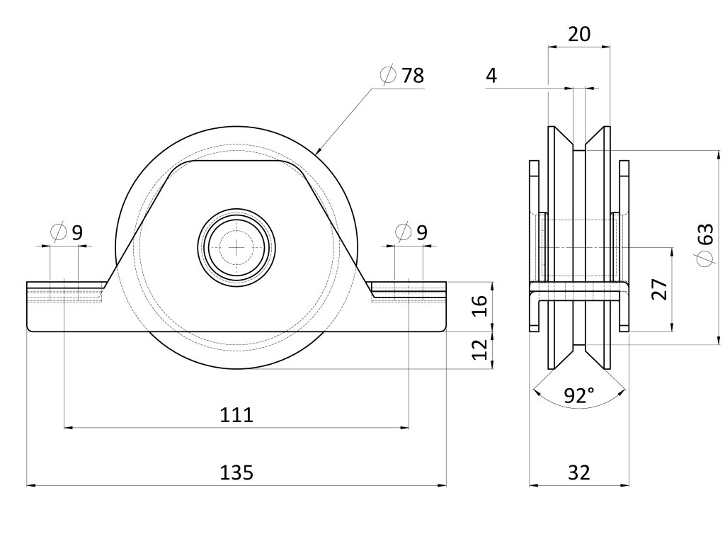 Kladka ø 78mm pre zapustenie do jokla, pre profil C906IXV, nosnosť (celej brány) 400kg, nerez /AISI304