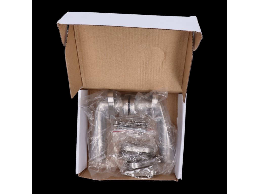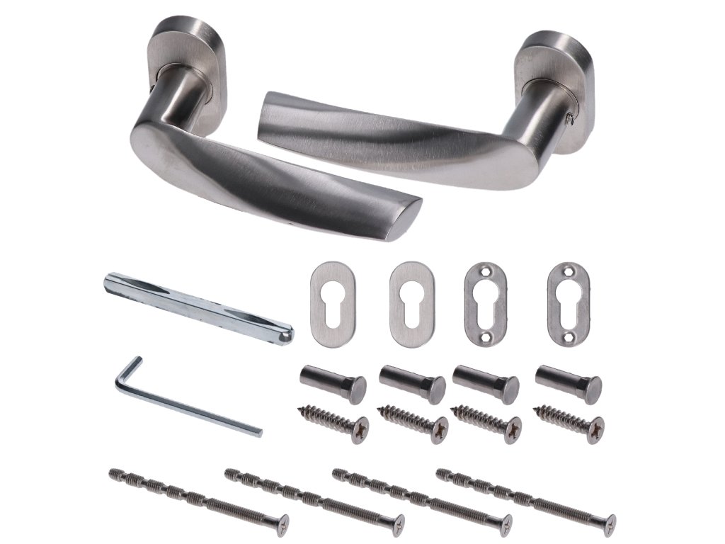 kľučka nerezová (pár) vrátane dolnej rozety, balenie: 2ks kľučka + 2ks dolná rozeta, príslušenstvo k montáži, brúsená nerez K320 /AISI304