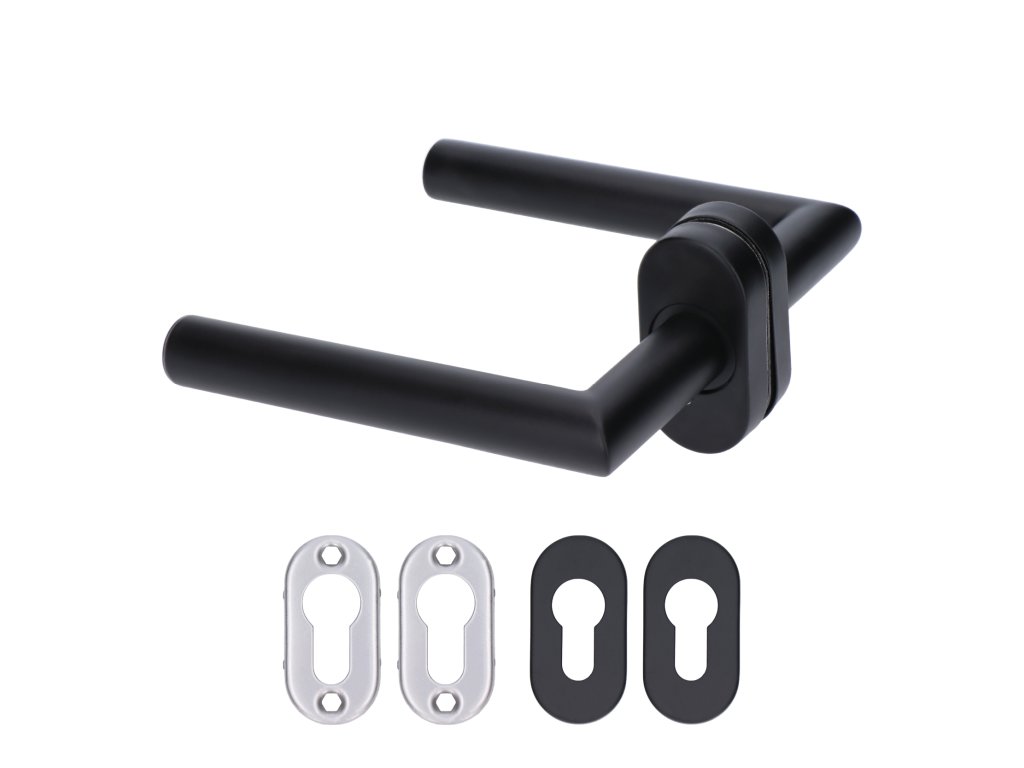 Kľučka nerezová (pár) vrátane dolnej rozety, balenie: 2ks kľučka + príslušenstvo k montáži, farba: čierna, brúsená nerez K320 /AISI304