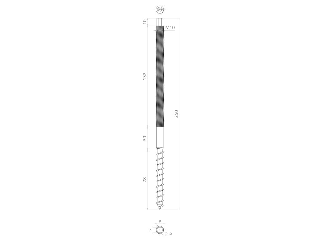 Nerezový závitový vrut (10x250) samorezný / metrický závit, DIN9082/A2 /AISI304