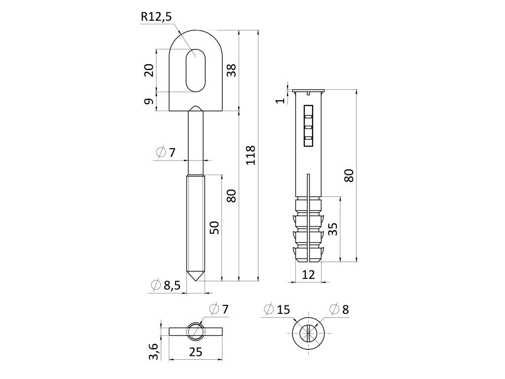 Kotvenie plotu 38X25mm s hmoždinkou, čierne