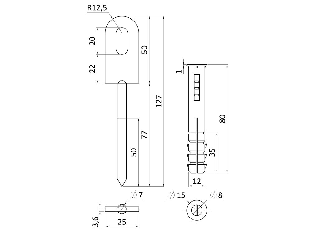 Kotvenie plotu 50X25mm s hmoždinkou, antracit