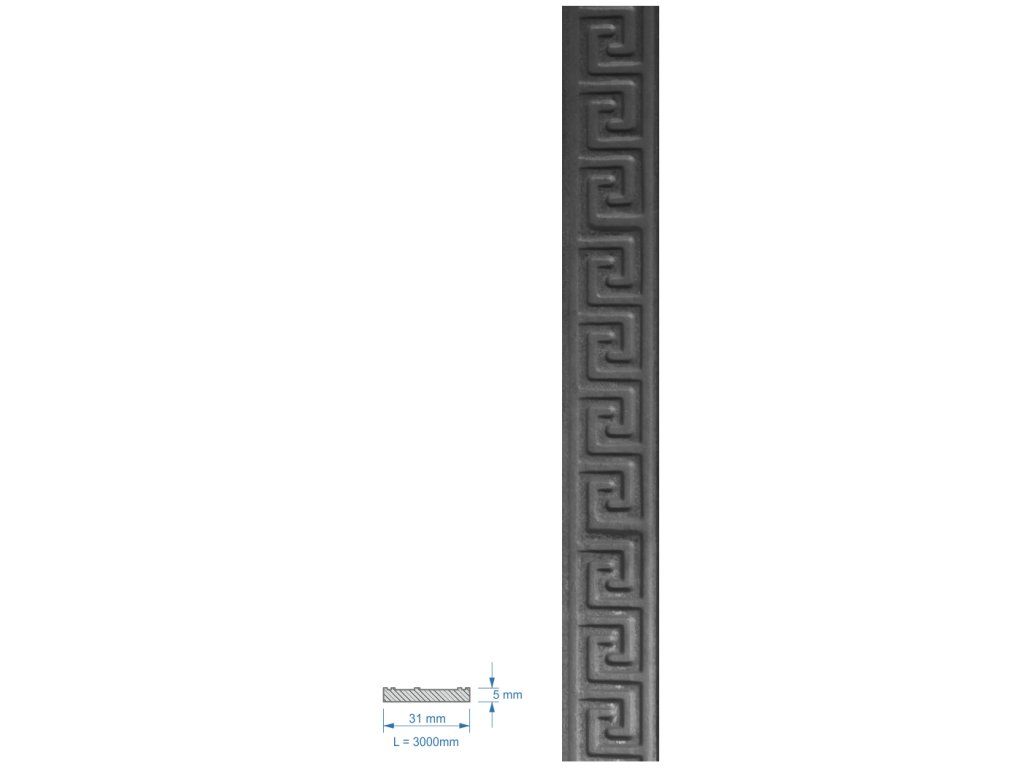 plochá tyč vzorovaná 31x5mm, čierna S235, L-3000mm, Cena je uvedená za 3m kus