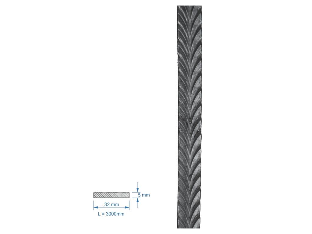 plochá tyč vzorovaná 32x5mm, L-3000mm, cena za 1mDodatočné parametre