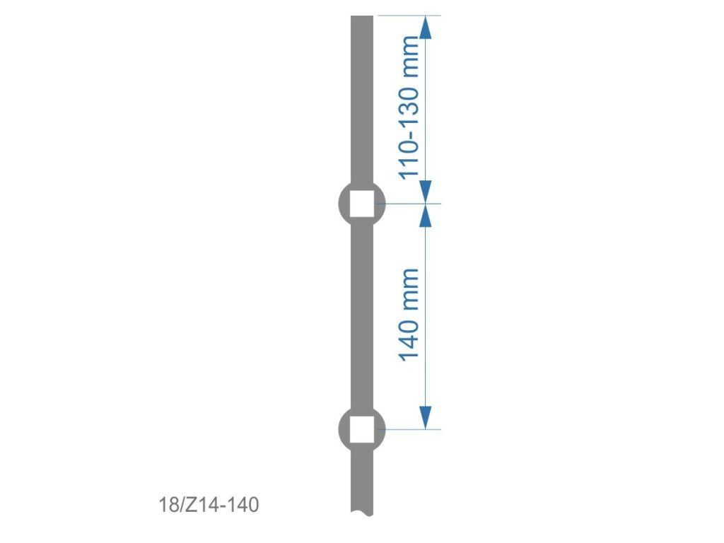 prebíjaná tyč H 2000mm opieskovaná, profil ø14mm, rozteč dier 140mm, oko ø15mm - 14ksDodatočné parametre