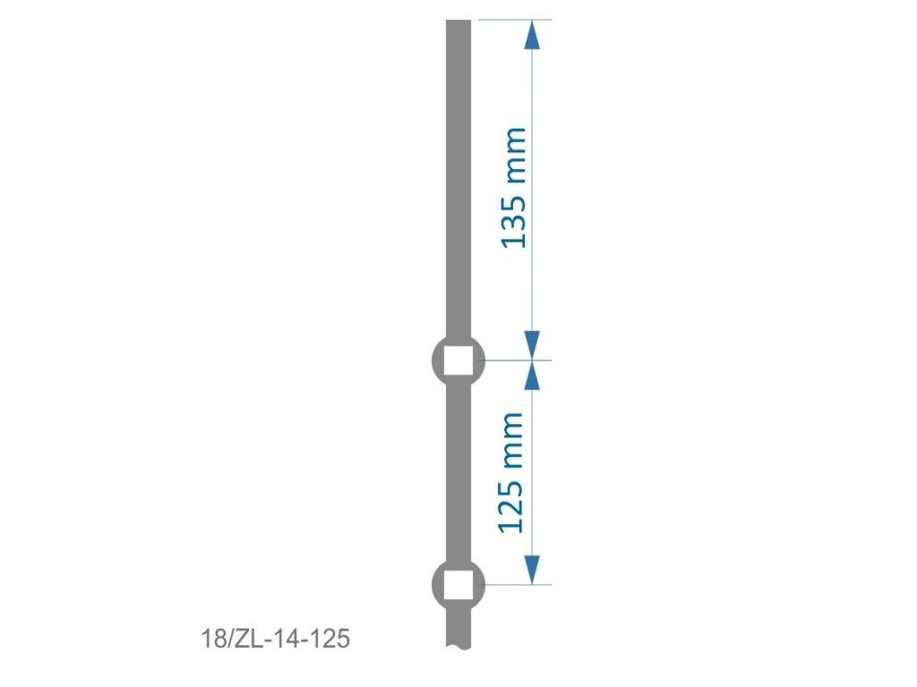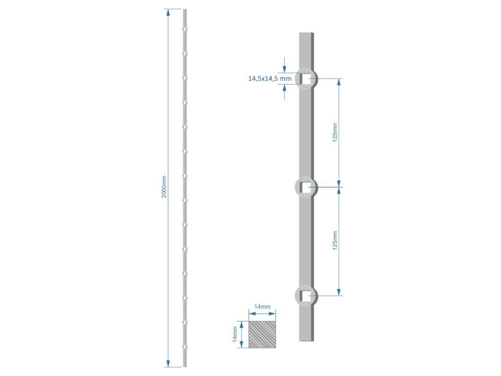 prebíjaná tyč H 2000mm opieskovaná, profil 14x14mm, rozteč dier 125mm, oko 14,5x14,5mm - 14ksDodatočné parametre