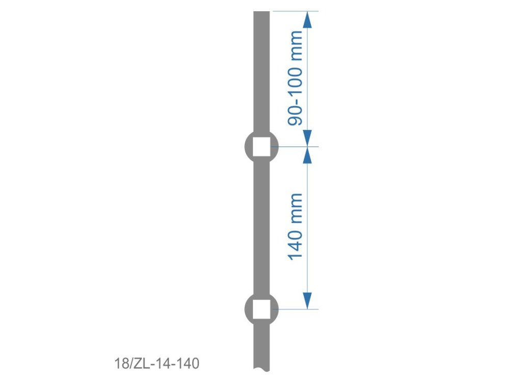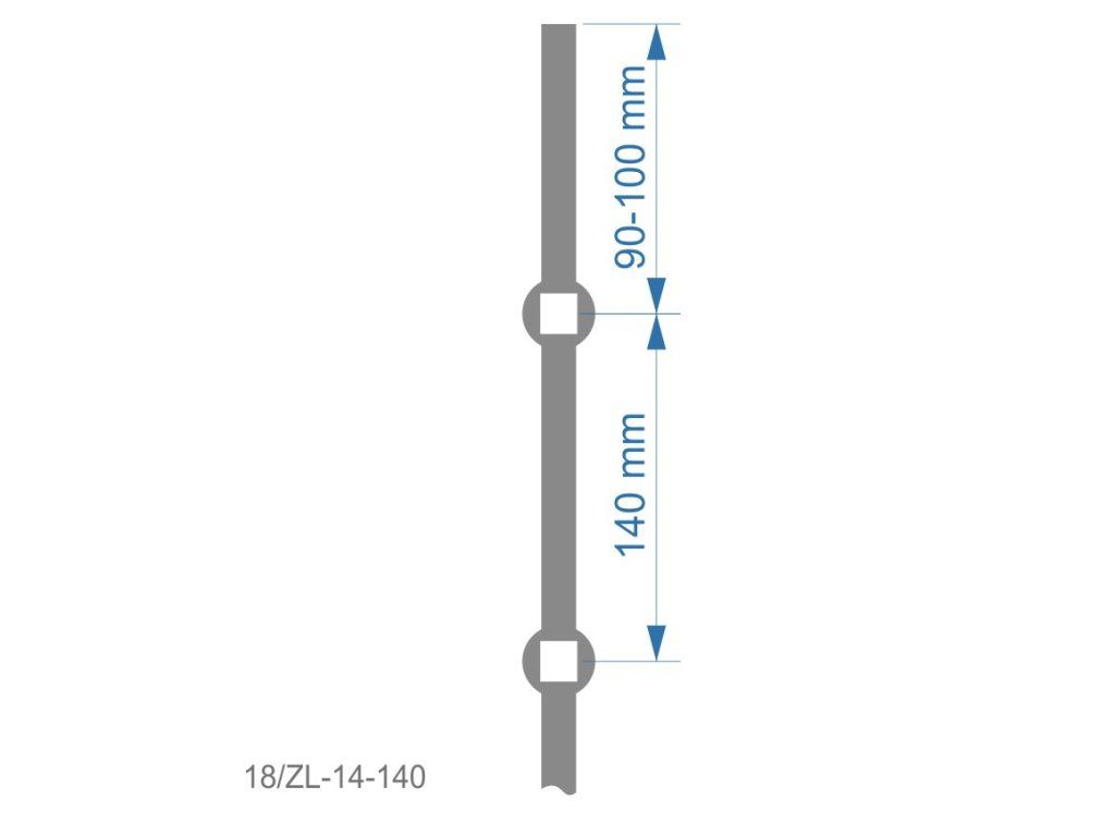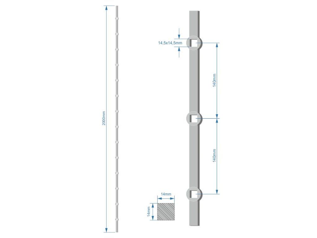 prebíjaná tyč H 2000mm opieskovaná, profil 14x14mm, rozteč dier 140mm, oko 14,5x14,5mm - 14ksDodatočné parametre
