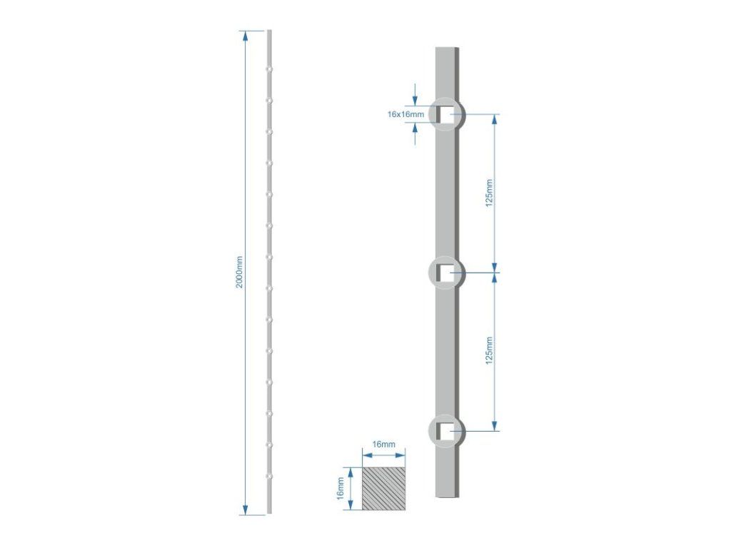 presek 16x16mm, rozteč dier 125mm, 2000mmm, oko 16x16mm - 16ksDodatočné parametre