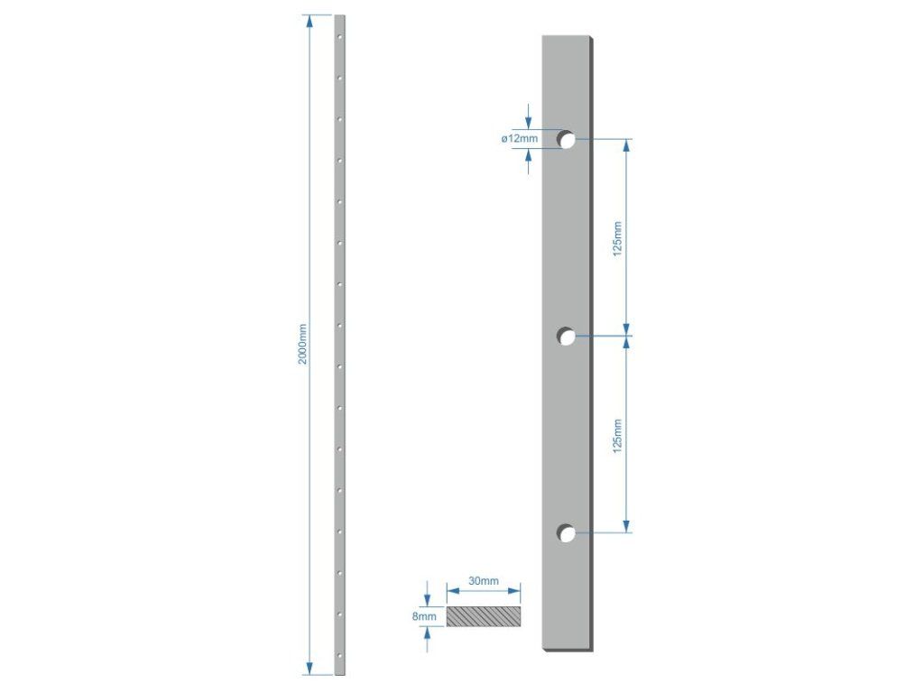 tyč plochá 30x8mm, dierovaná, rozteč dier 125mm, diera ø 12mm, L=2000mm