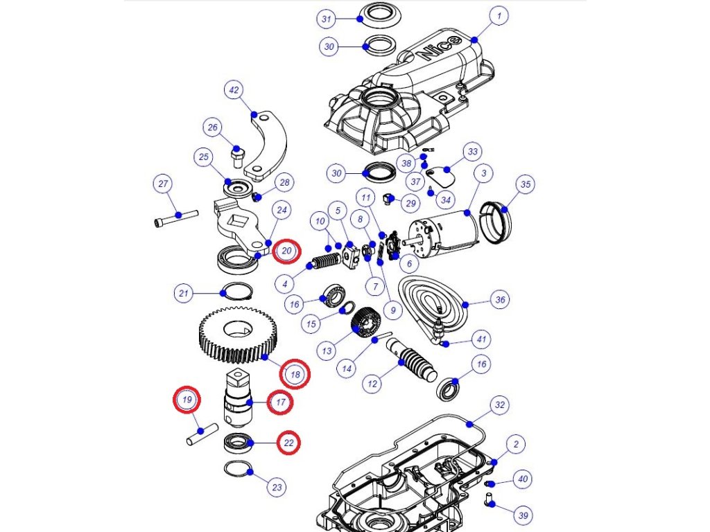 SPAMG02400 zostava prevodovky a hriadele s ložiskami pre METRO MB5024 obsahuje:17,18,19,20,22