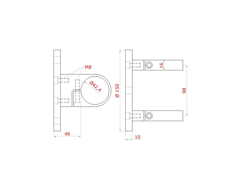 úchyt na bočné kotvenie stĺpu ø 42.4mm, (kotviaca platňa ø 150 /10mm), brúsená nerez K320 /AISI304