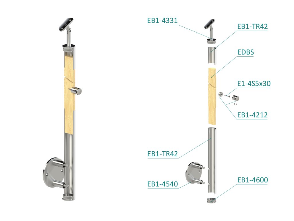 drevený stĺp, bočné kotvenie, 4 radový, priechodný, vonkajší, vrch nastaviteľný (ø 42mm), materiál: buk, brúsený povrch bez náteru