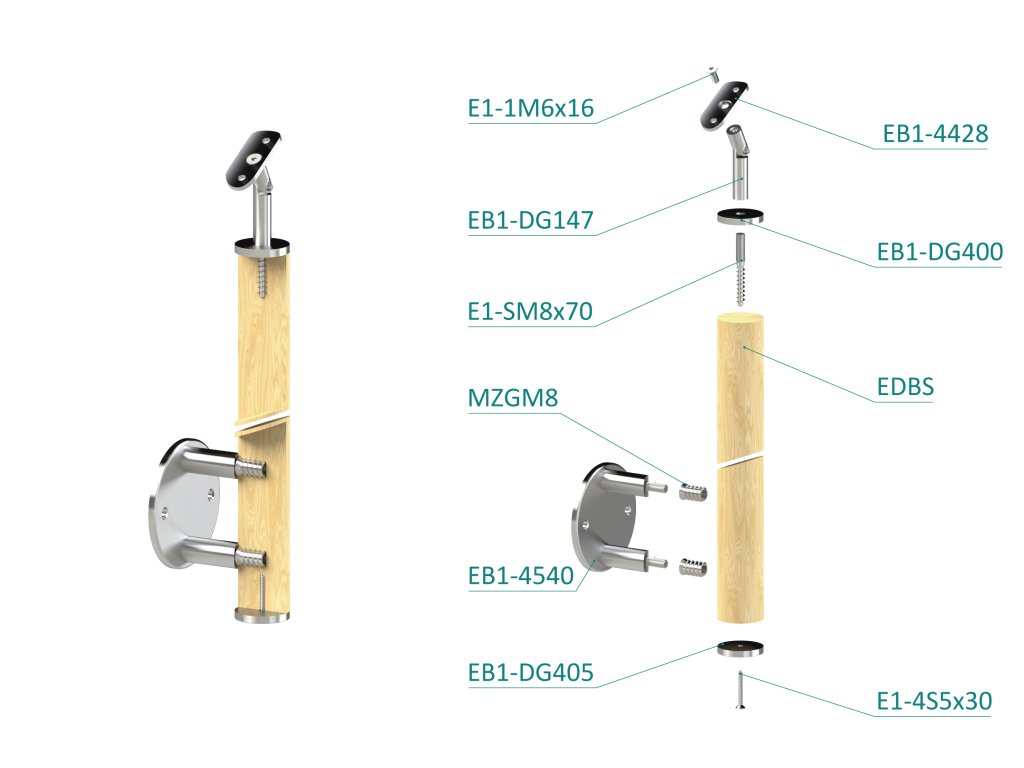 drevený stĺp, bočné kotvenie, bez výplne, vrch nastaviteľný (ø 42mm), materiál: buk, brúsený povrch bez náteru