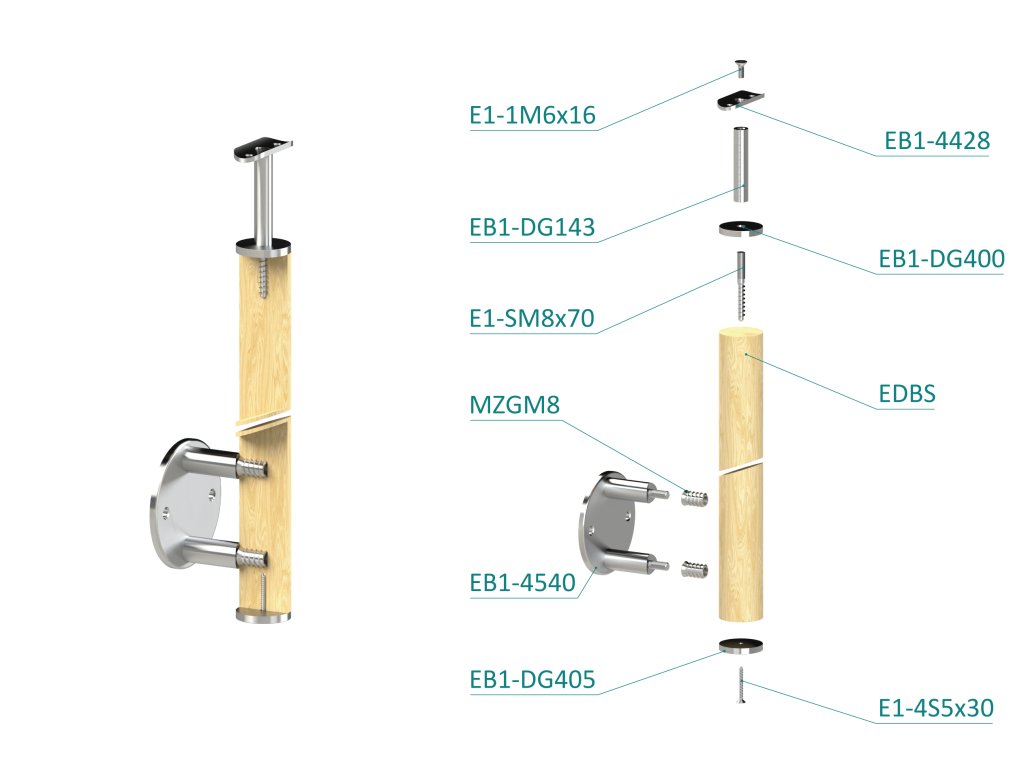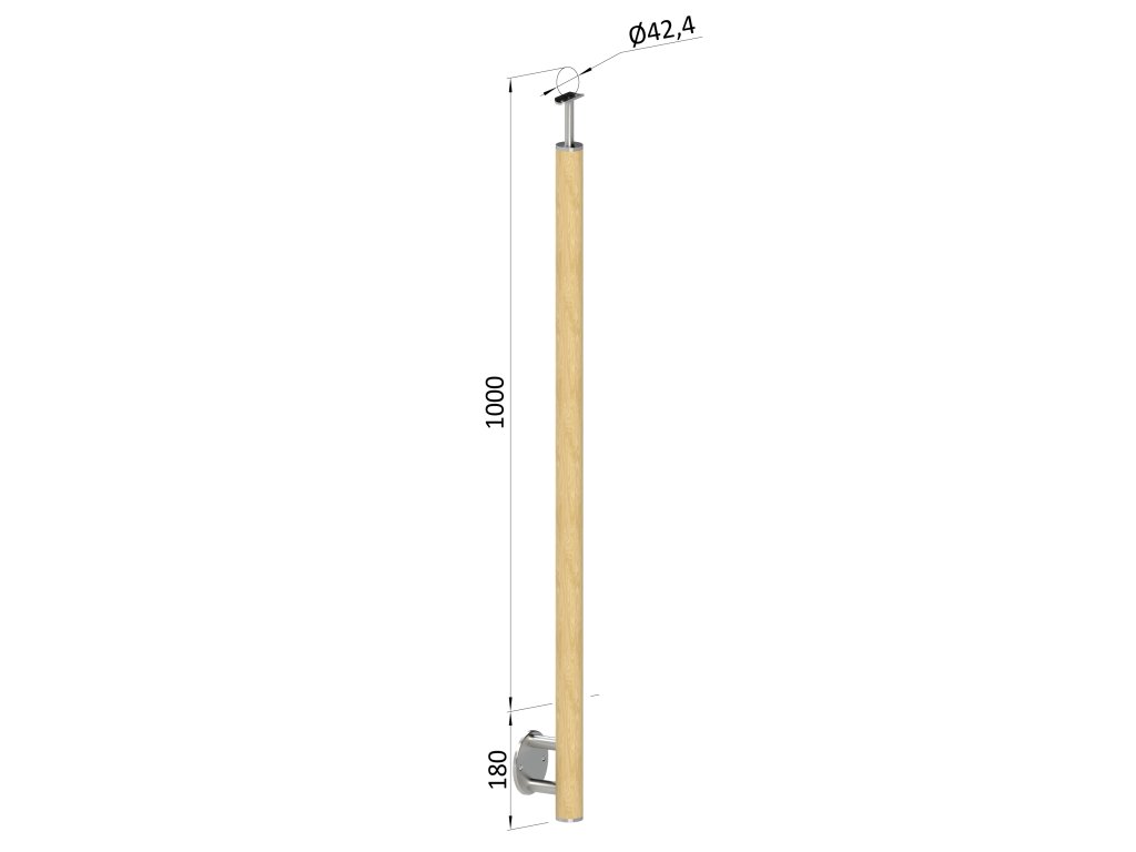 drevený stĺp, bočné kotvenie, bez výplne, vrch pevný (ø 42mm), materiál: buk, brúsený povrch s náterom BORI (bezfarebný)