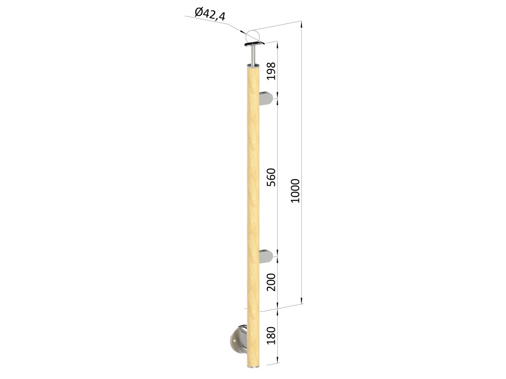 drevený stĺp, bočné kotvenie, výplň: sklo, pravý, vrch pevný (ø 42mm), materiál: buk, brúsený povrch s náterom BORI (bezfarebný)