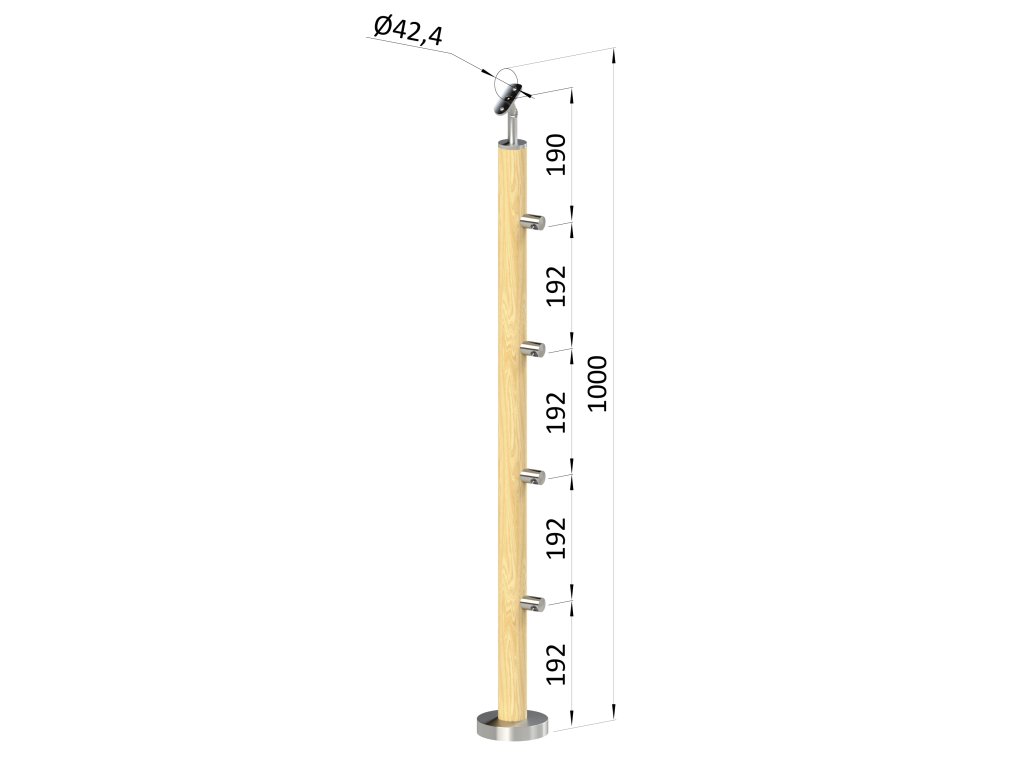 drevený stĺp, vrchné kotvenie, 4 radový, priechodný, vrch nastaviteľný (ø 42mm), materiál: buk, brúsený povrch s náterom BORI (bezfarebný)Dodatočné parametre