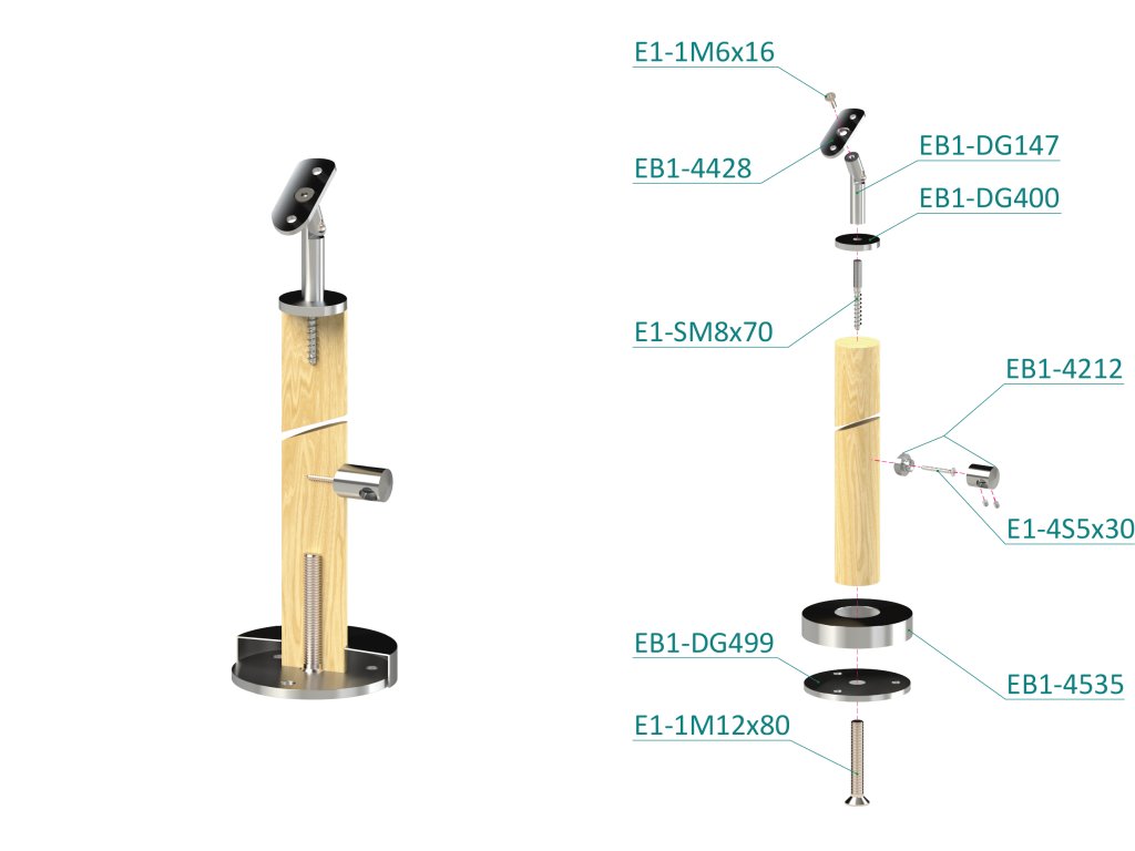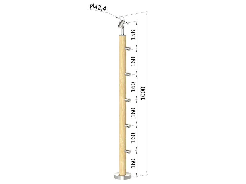 drevený stĺp, vrchné kotvenie, 5 radový, priechodný, vrch nastaviteľný (ø 42mm), materiál: buk, brúsený povrch bez náteruDodatočné parametre