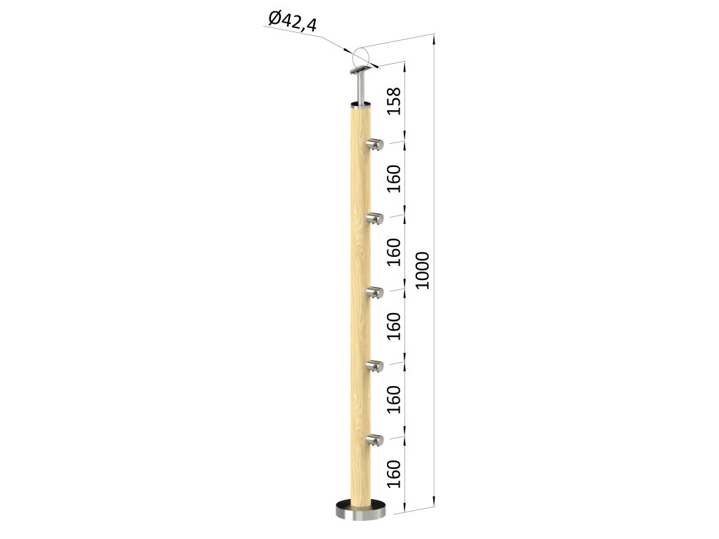 drevený stĺp, vrchné kotvenie, 5 radový, priechodný, vrch pevný (ø 42mm), materiál: buk, brúsený povrch s náterom BORI (bezfarebný)