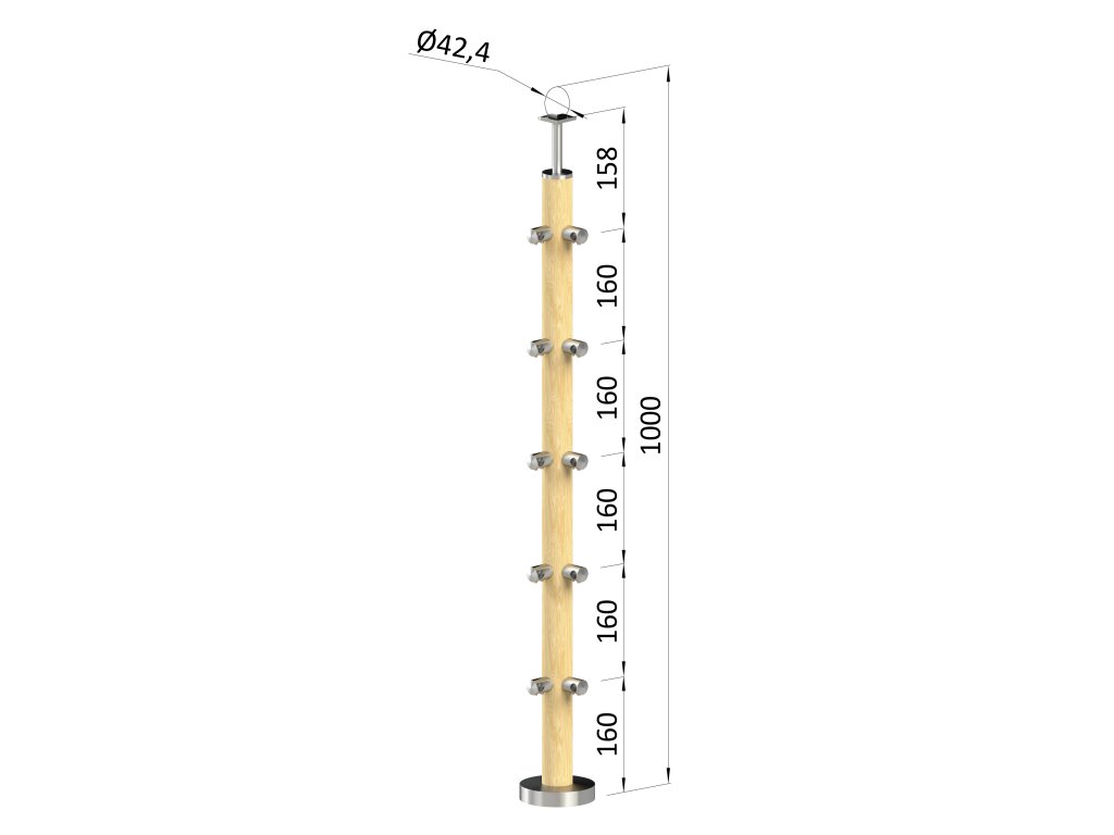 drevený stĺp, vrchné kotvenie, 5 radový, rohový: 90°, vrch pevný (ø 42mm), materiál: buk, brúsený povrch bez náteru