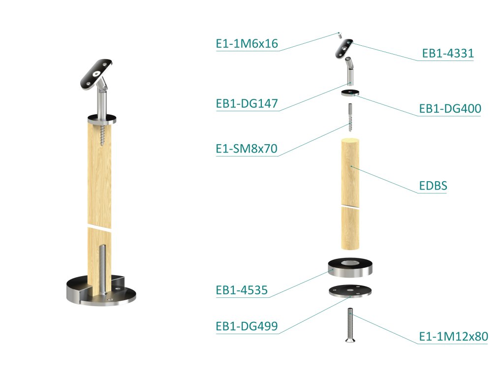 drevený stĺp, vrchné kotvenie, bez výplne, vrch nastaviteľný (ø 42mm), materiál: buk, brúsený povrch s náterom BORI (bezfarebný)