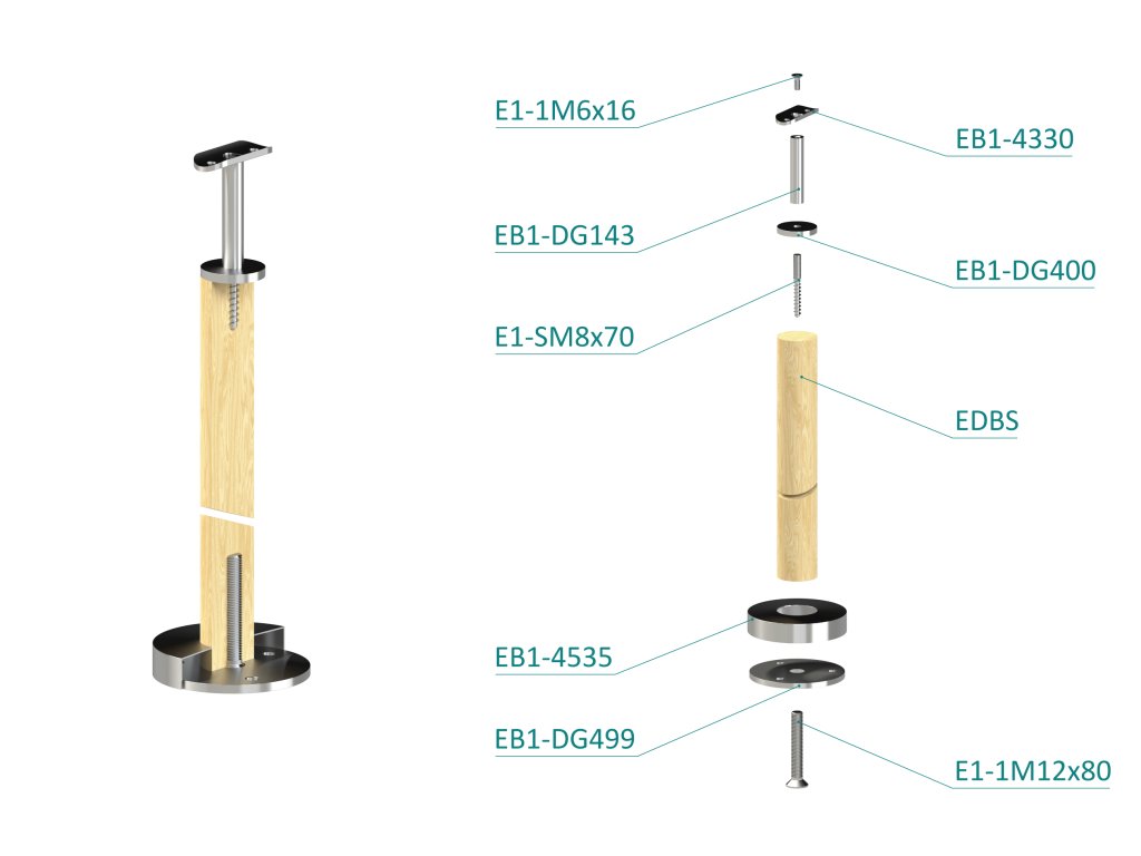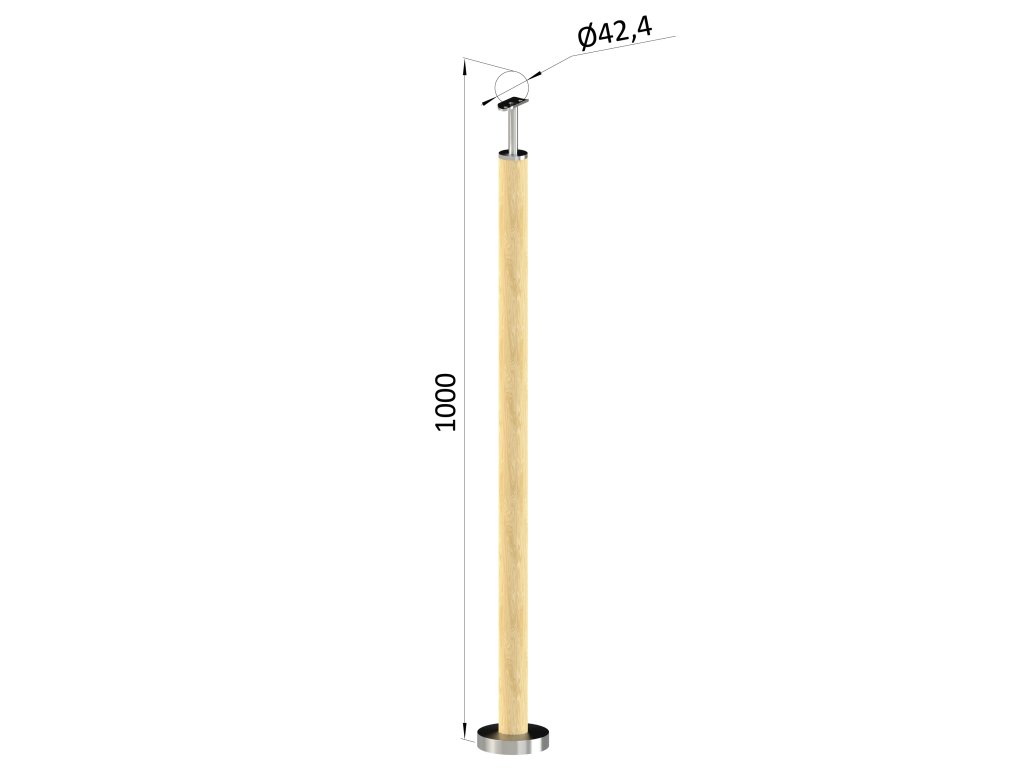 drevený stĺp, vrchné kotvenie, bez výplne, vrch pevný (ø 42mm), materiál: buk, brúsený povrch bez náteru
