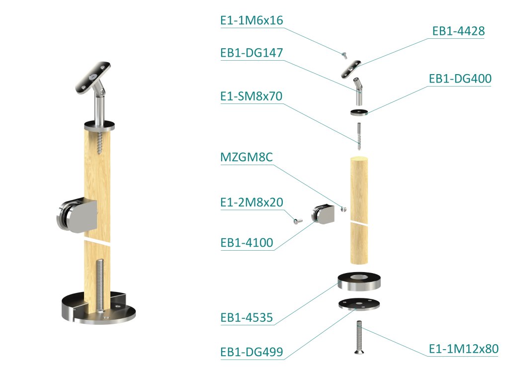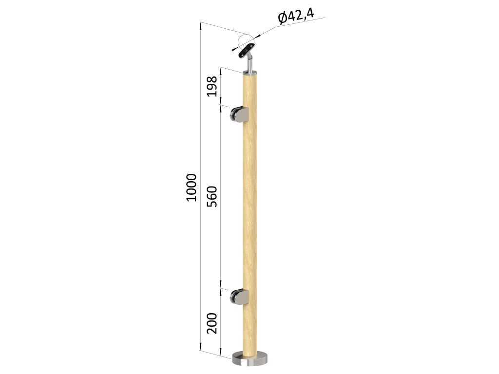 drevený stĺp, vrchné kotvenie, výplň: sklo, ľavý, vrch nastaviteľný (ø 42mm), materiál: buk, brúsený povrch bez náteruDodatočné parametre