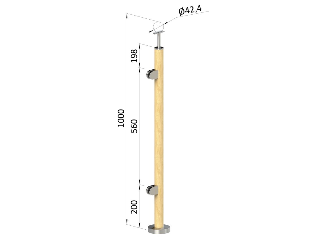drevený stĺp, vrchné kotvenie, výplň: sklo, ľavý, vrch pevný (ø 42mm), materiál: buk, brúsený povrch bez náteruDodatočné parametre