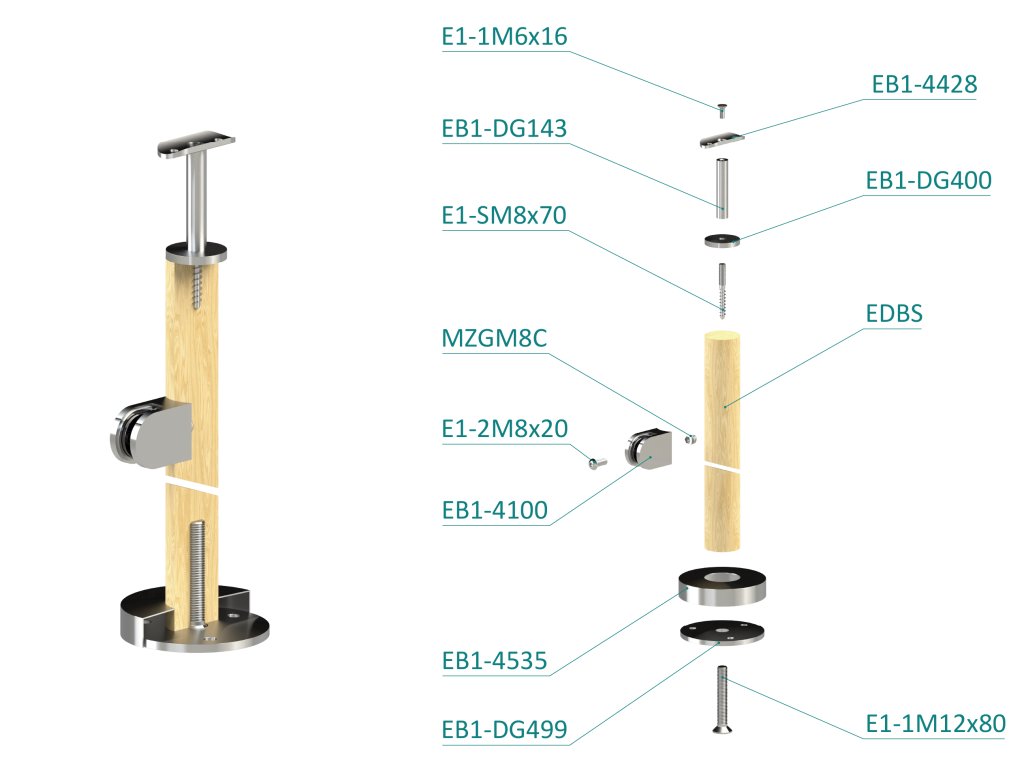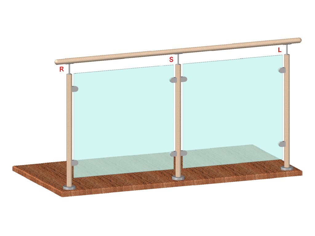 drevený stĺp, vrchné kotvenie, výplň: sklo, ľavý, vrch pevný (ø 42mm), materiál: buk, brúsený povrch s náterom BORI (bezfarebný)Dodatočné parametre