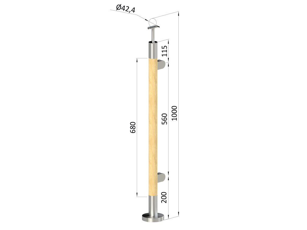 drevený stĺp, vrchné kotvenie, výplň: sklo, pravý, vrch pevný (ø 42mm), materiál: buk, brúsený povrch s náterom BORI (bezfarebný)