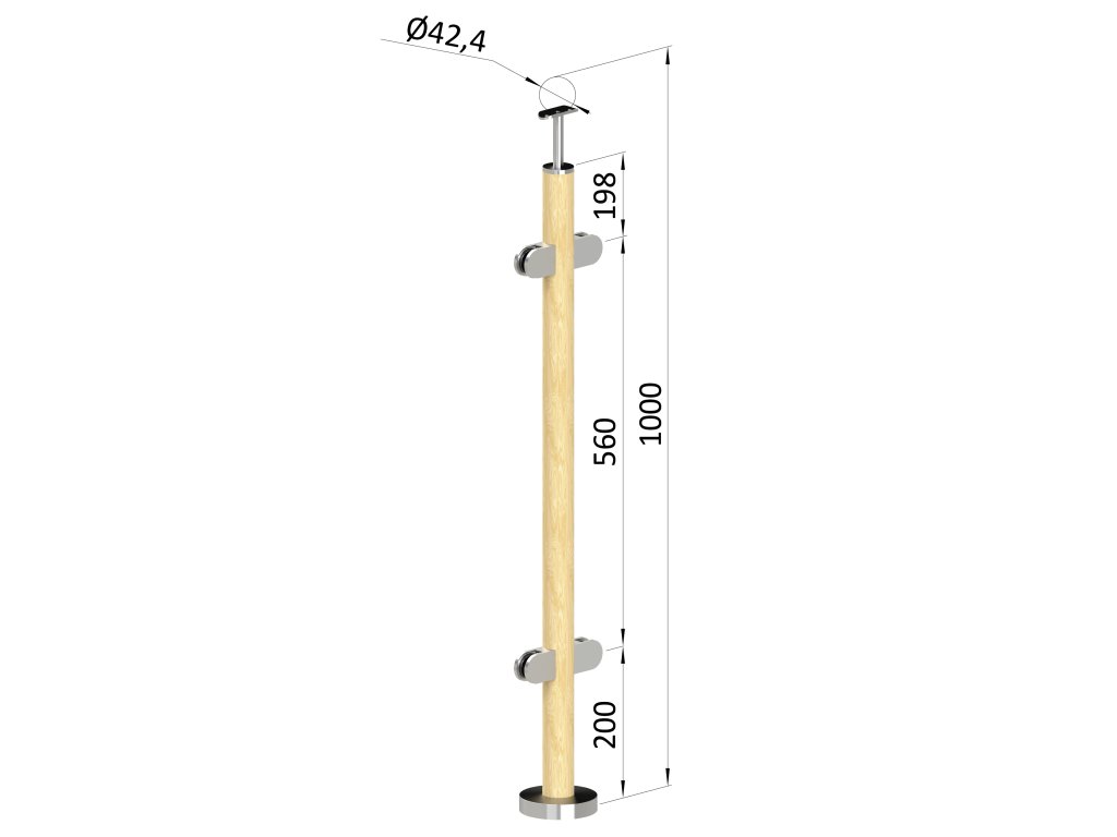 drevený stĺp, vrchné kotvenie, výplň: sklo, priechodný, vrch pevný (ø 42mm), materiál: buk, brúsený povrch s náterom BORI (bezfarebný)Dodatočné parametre