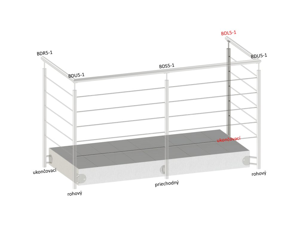 nerezový stĺp, bočné kotvenie, 5 dierový koncový, ľavý, vrch pevný (ø 42.4x2mm), brúsená nerez K320 /AISI316Dodatočné parametre