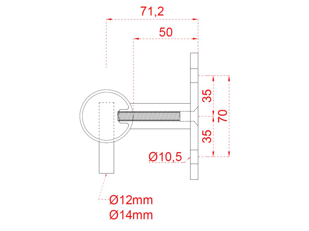 nerezový stĺp, bočné kotvenie, 5 dierový koncový, pravý, vrch pevný (ø 42.4x2mm), brúsená nerez K320 /AISI304Dodatočné parametre