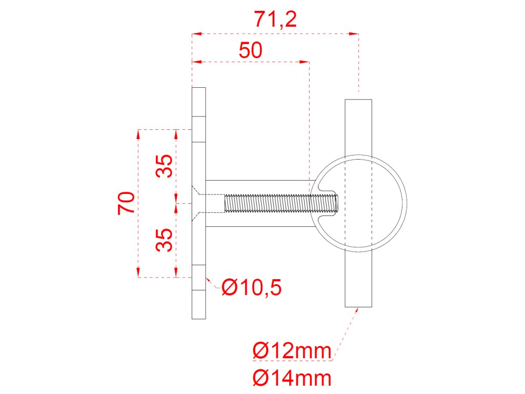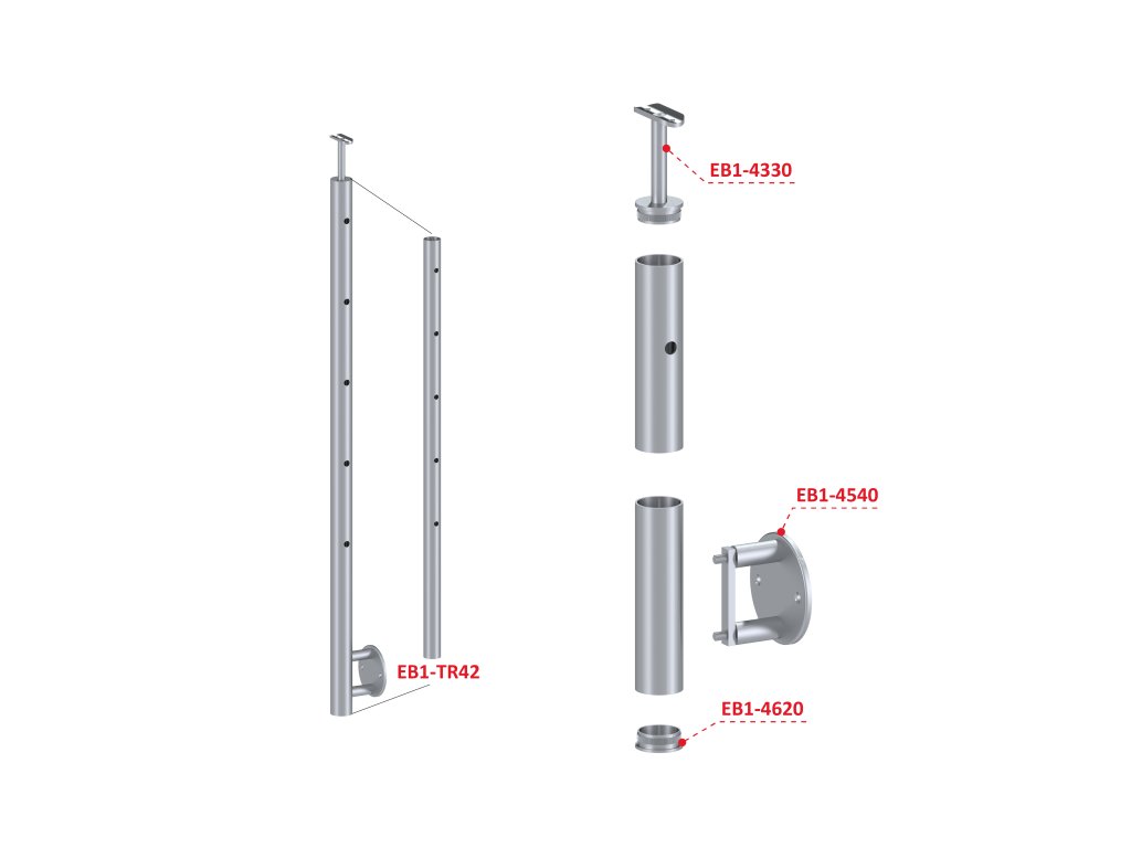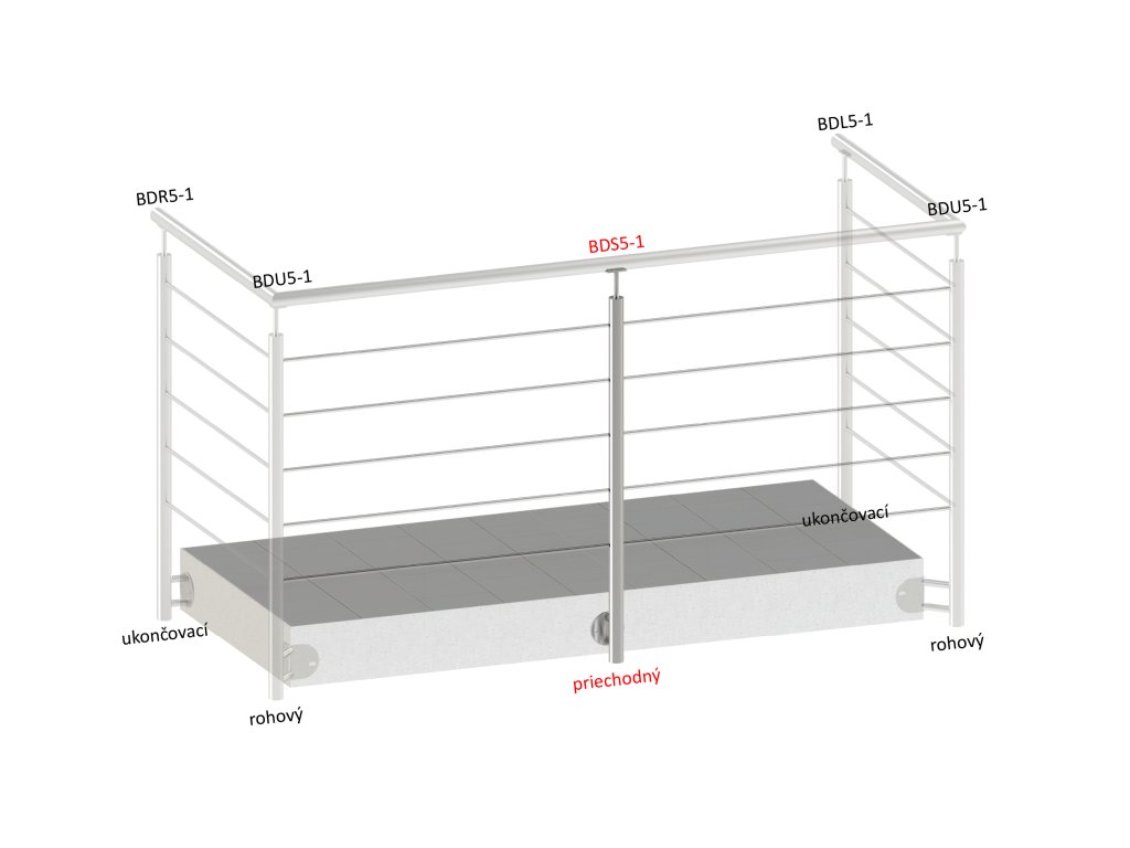 nerezový stĺp, bočné kotvenie, 5 dierový priechodný, vrch pevný (ø 42.4x2mm), brúsená nerez K320 /AISI304Dodatočné parametre