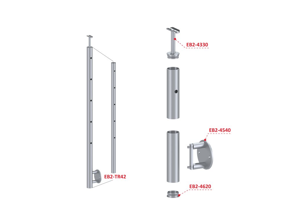 nerezový stĺp, bočné kotvenie, 5 dierový priechodný, vrch pevný (ø 42.4x2mm), brúsená nerez K320 /AISI316Dodatočné parametre