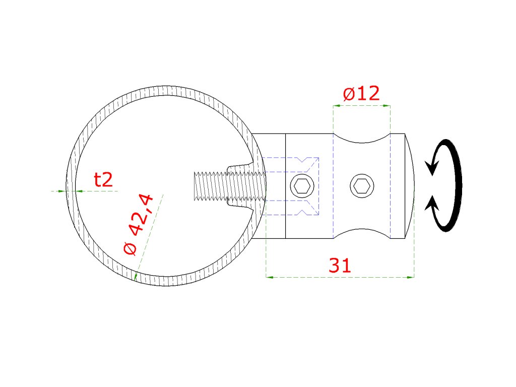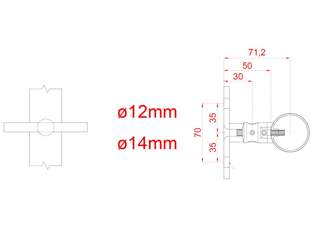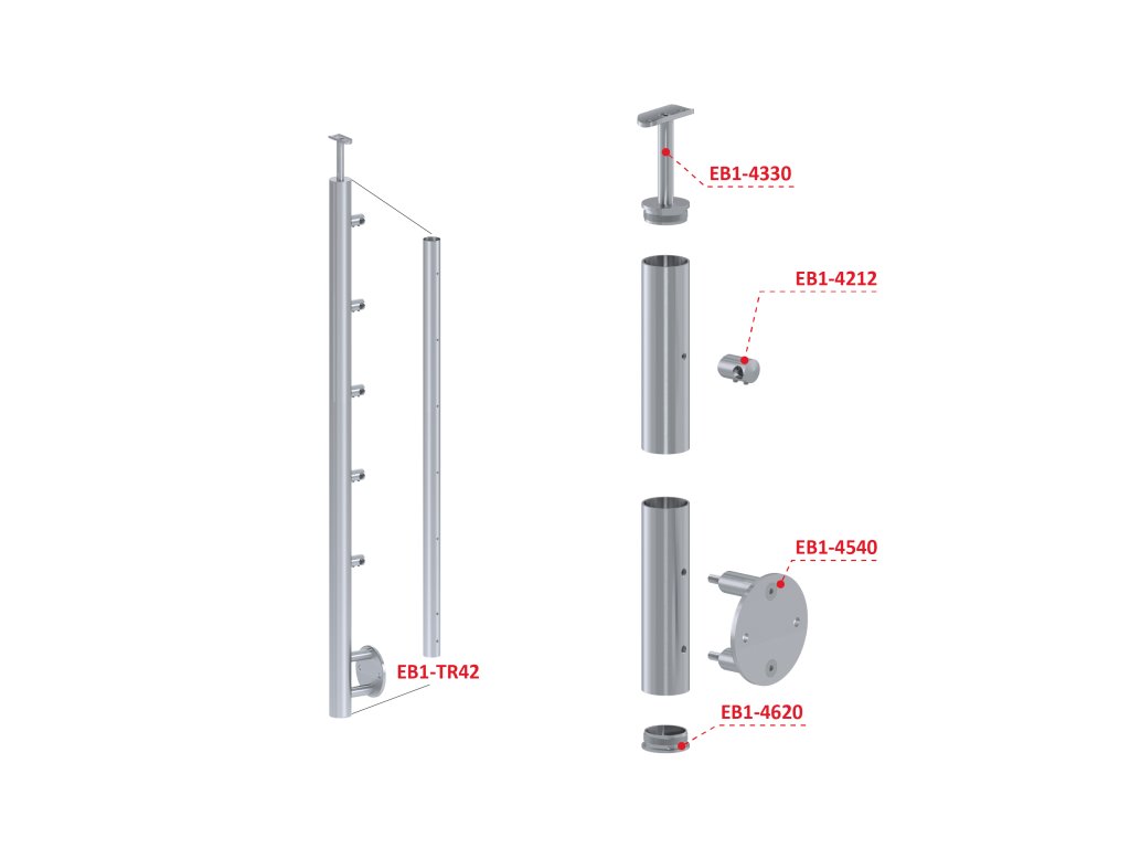 Nerezový stĺp, bočné kotvenie, 5 radový priechodný, vnútorný, vrch pevný, (ø 42.4x2mm), brúsená nerez K320 /AISI304