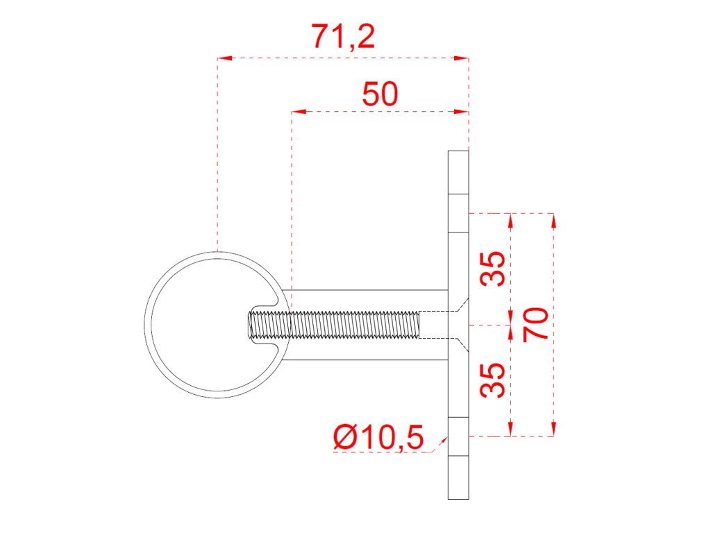nerezový stĺp, bočné kotvenie, bez výplne, vrch pevný (ø 42.4x2mm), leštená nerez /AISI304Dodatočné parametre