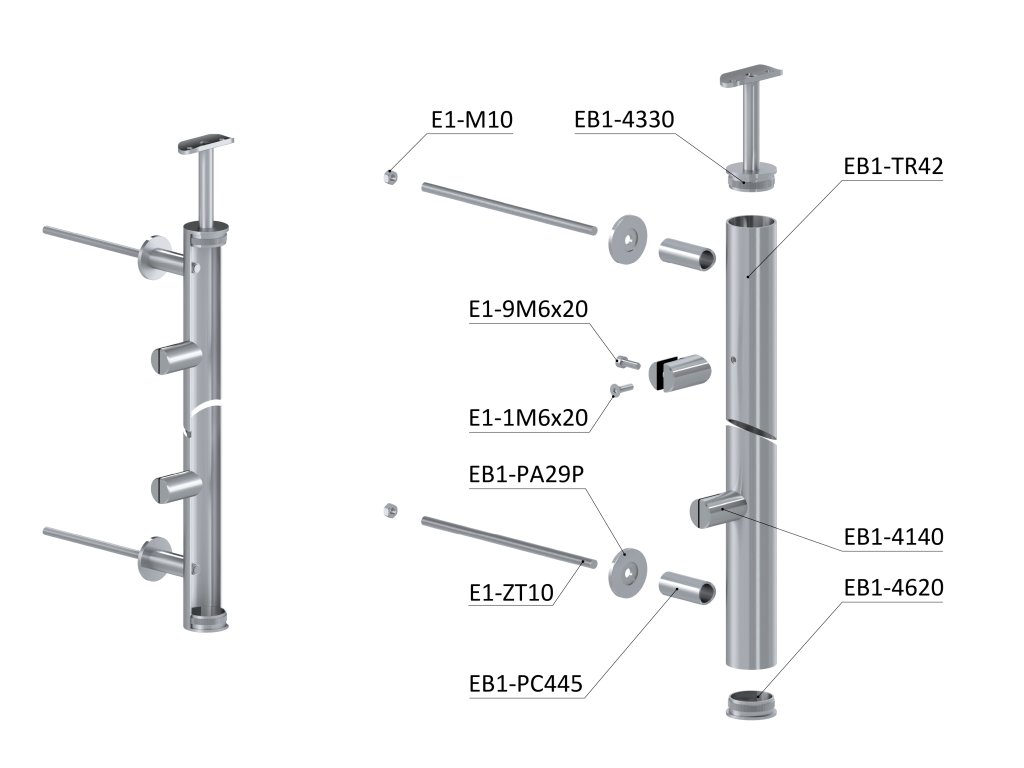 nerezový stĺp, bočné kotvenie, výplň: plech, ľavý, vrch pevný, (ø 42.4x2mm), brúsená nerez K320 /AISI304Dodatočné parametre