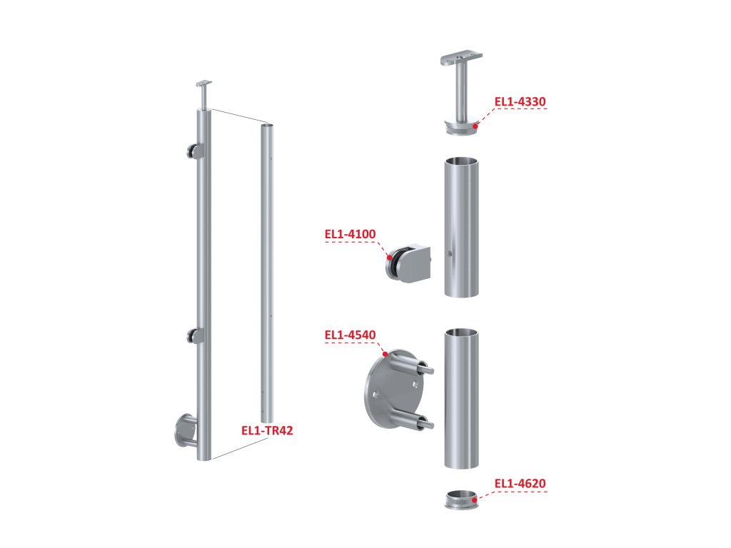 nerezový stĺp, bočné kotvenie, výplň: sklo, ľavý, vrch pevný (ø 42.4x2mm), leštená nerez /AISI304Dodatočné parametre