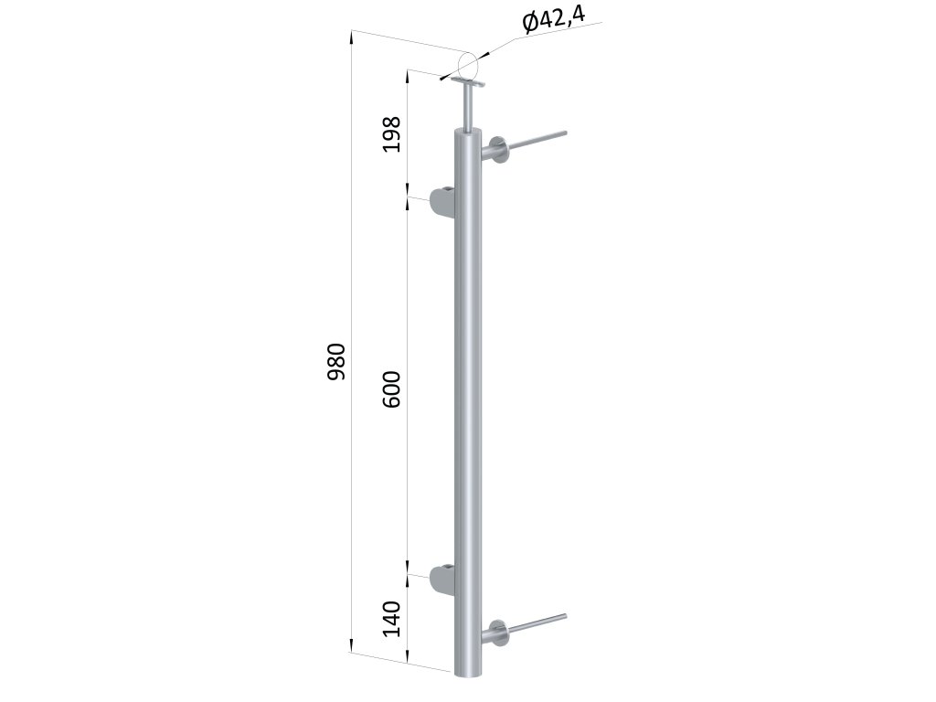 nerezový stĺp, bočné kotvenie, výplň: sklo, ľavý, vrch pevný, (ø 42.4x2mm), brúsená nerez K320 /AISI304Dodatočné parametre