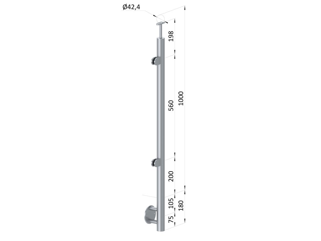 nerezový stĺp, bočné kotvenie, výplň: sklo, ľavý, vrch pevný, (ø 42.4x2mm), brúsená nerez K320 /AISI304Dodatočné parametre