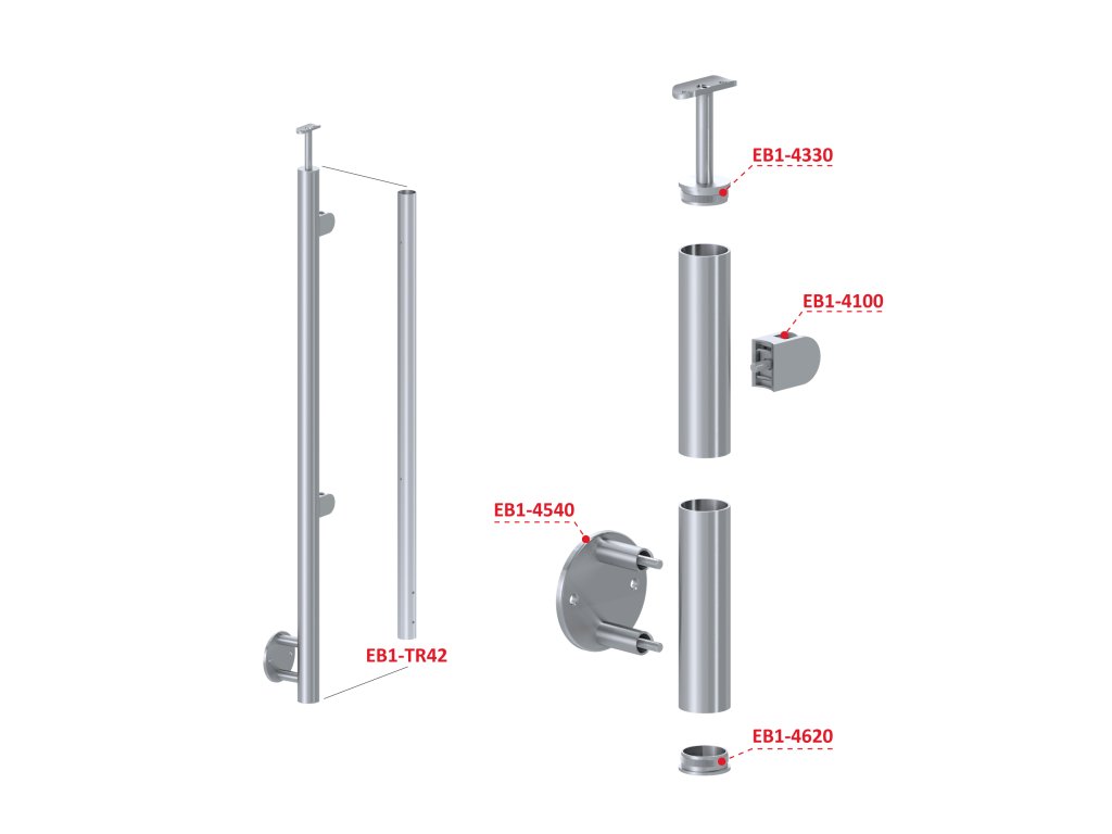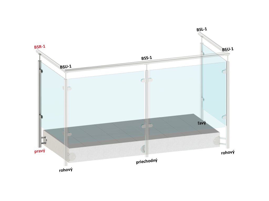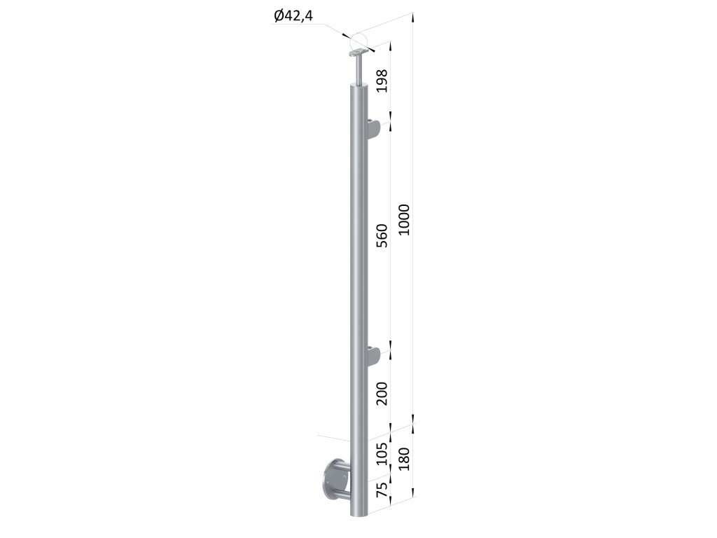 nerezový stĺp, bočné kotvenie, výplň: sklo, pravý, vrch pevný (ø 42.4x2mm), brúsená nerez K320 /AISI304Dodatočné parametre