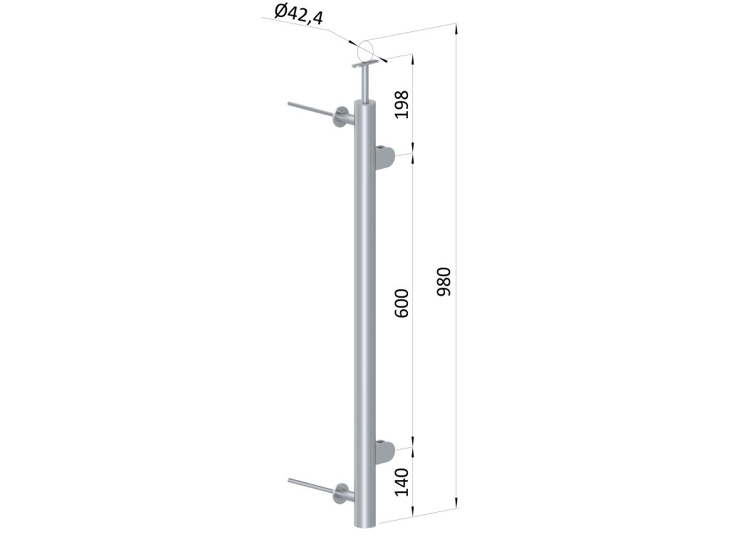 nerezový stĺp, bočné kotvenie, výplň: sklo, pravý, vrch pevný, (ø 42.4x2mm), brúsená nerez K320 /AISI304Dodatočné parametre