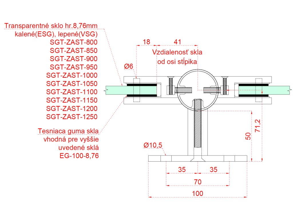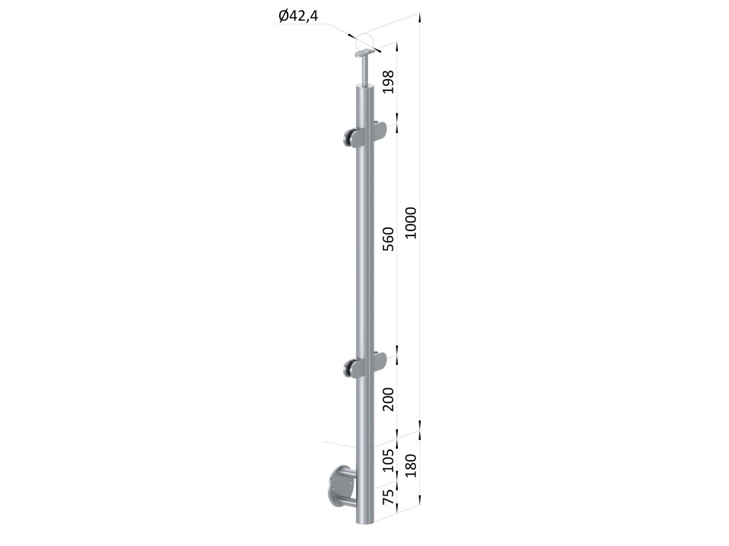 nerezový stĺp, bočné kotvenie, výplň: sklo, priechodný, vrch pevný (ø 42.4x2mm), leštená nerez /AISI304Dodatočné parametre