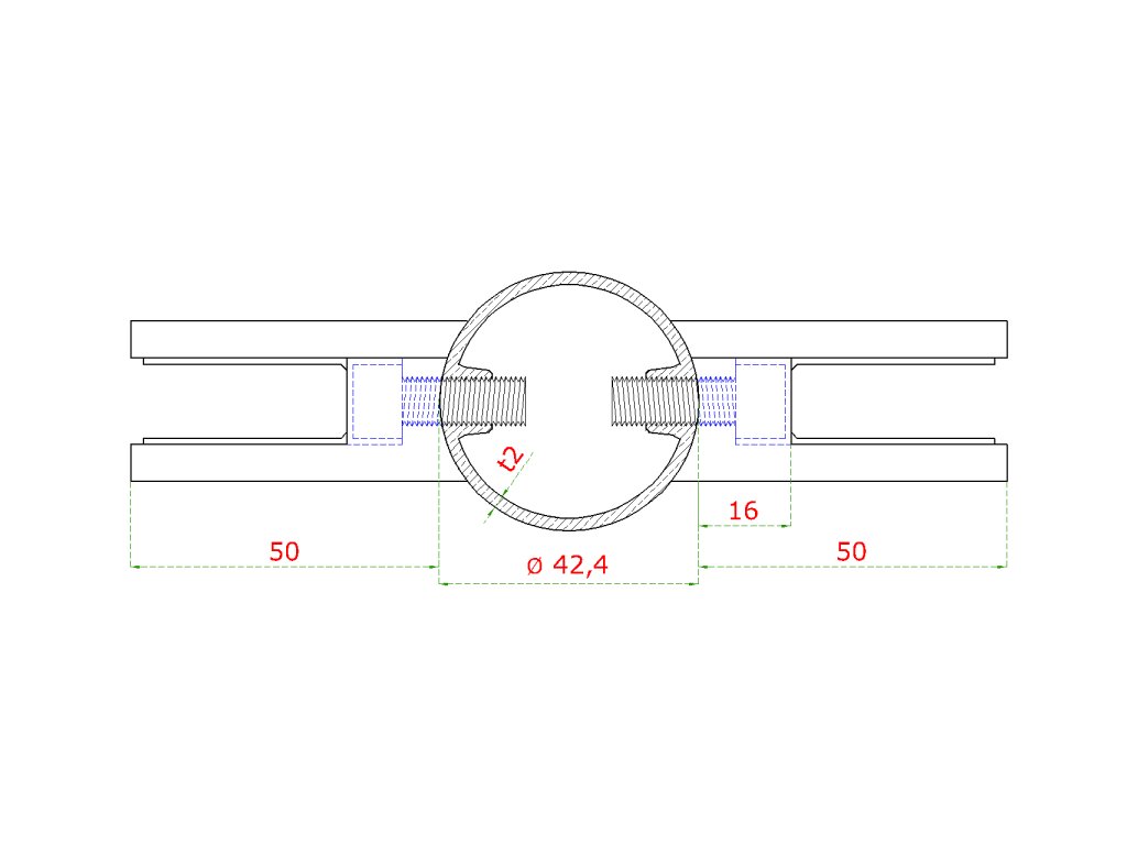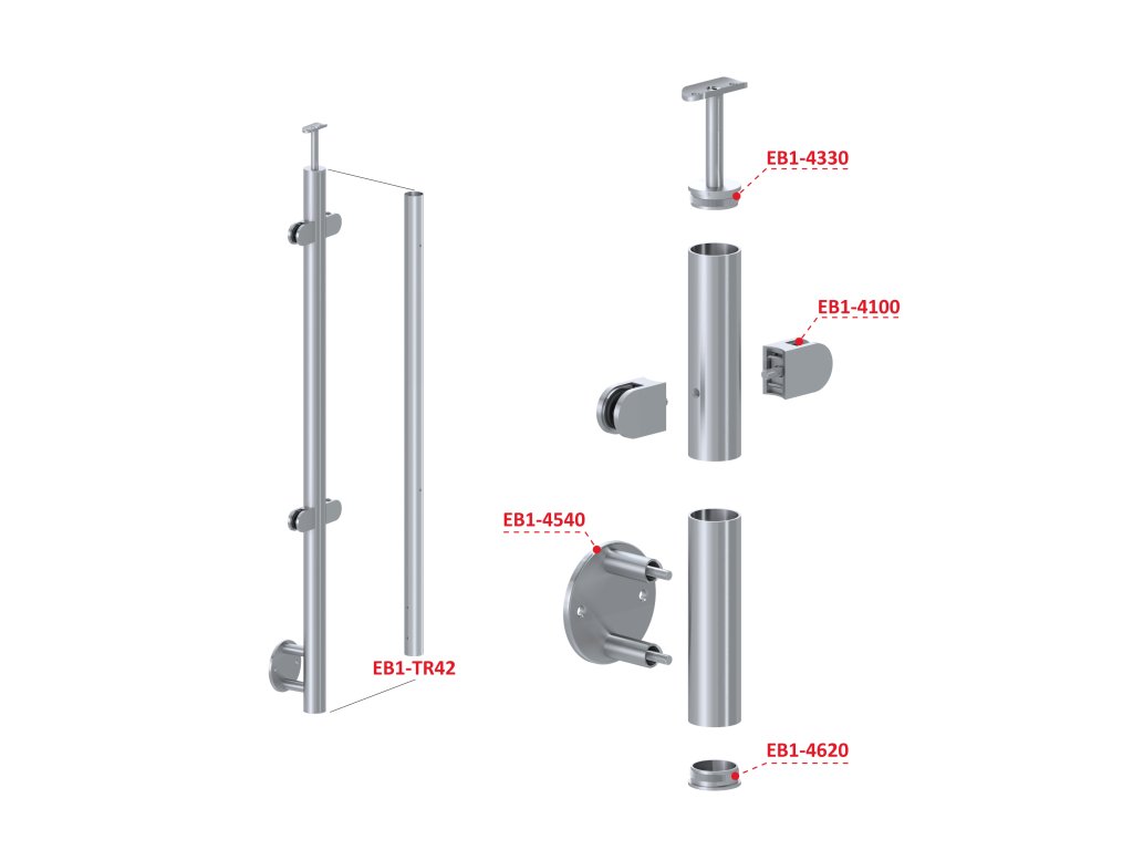 nerezový stĺp, bočné kotvenie, výplň: sklo, priechodný, vrch pevný, (ø 42.4x2mm), brúsená nerez K320 /AISI304Dodatočné parametre