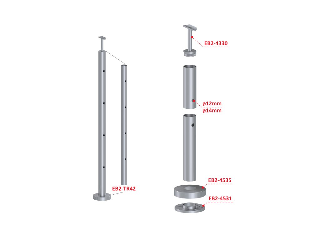 nerezový stĺp, vrchné kotvenie, 4 dierový priechodný, vrch pevný (ø 42.4x2mm), brúsená nerez K320 /AISI316Dodatočné parametre