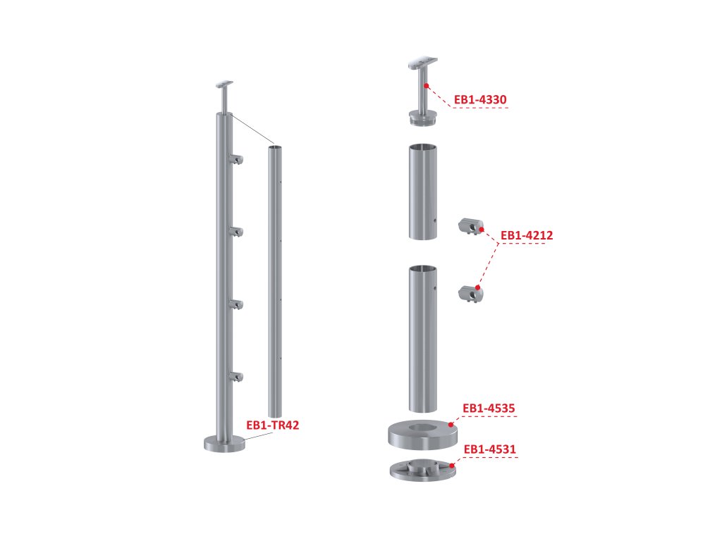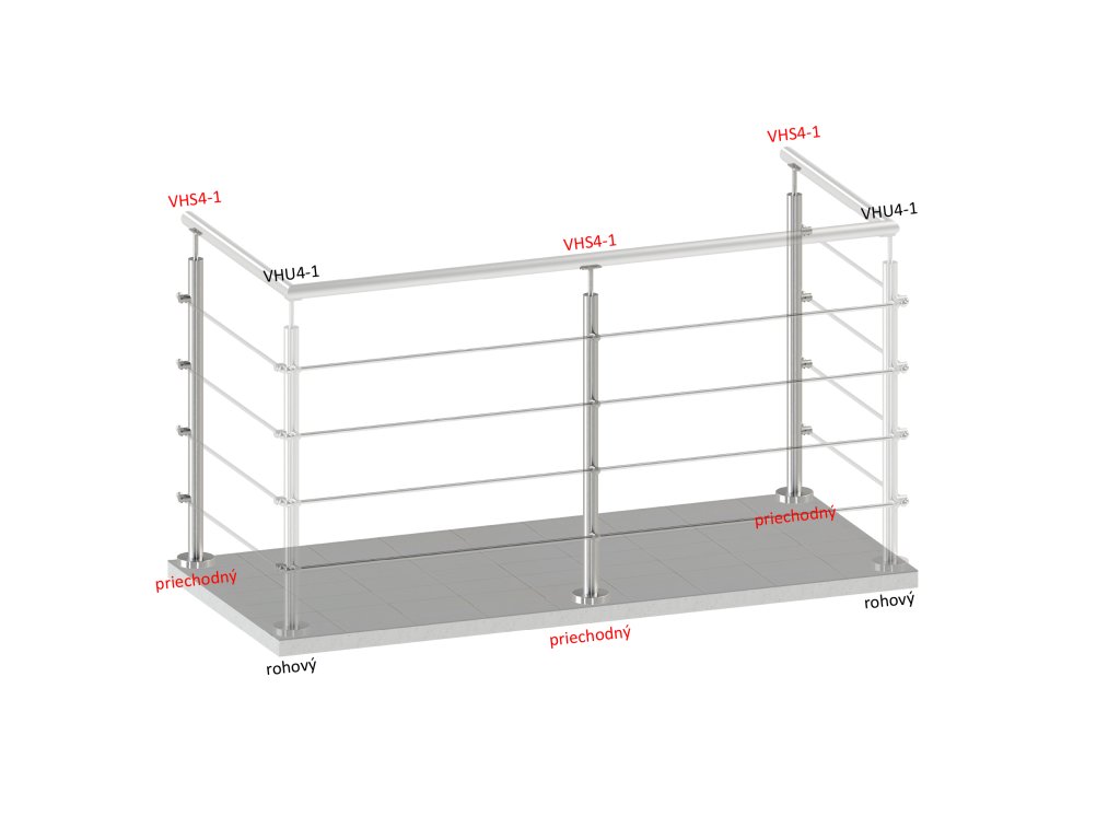 nerezový stĺp, vrchné kotvenie, 4 radový priechodný, vrch pevný (ø 42.4x2mm), brúsená nerez K320 /AISI304Dodatočné parametre