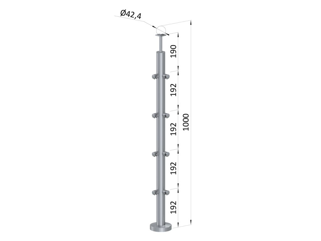 nerezový stĺp, vrchné kotvenie, 4 radový rohový: 90°, vrch pevný (ø 42.4x2mm), leštená nerez K600/AISI304Dodatočné parametre