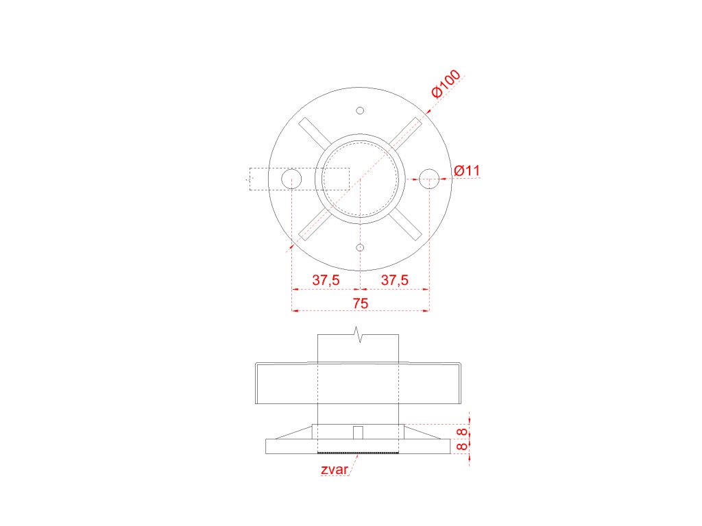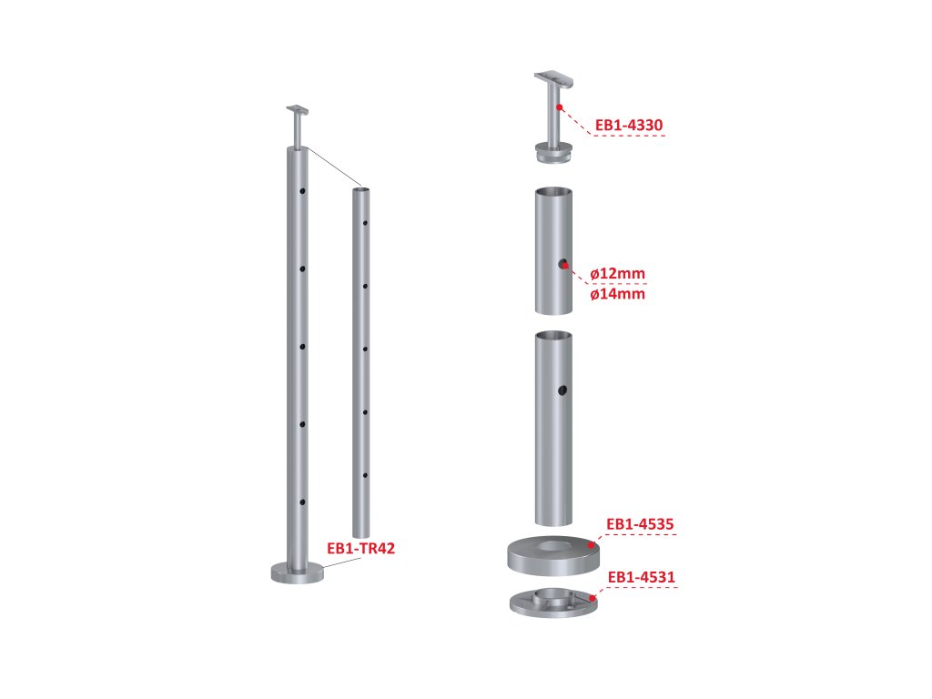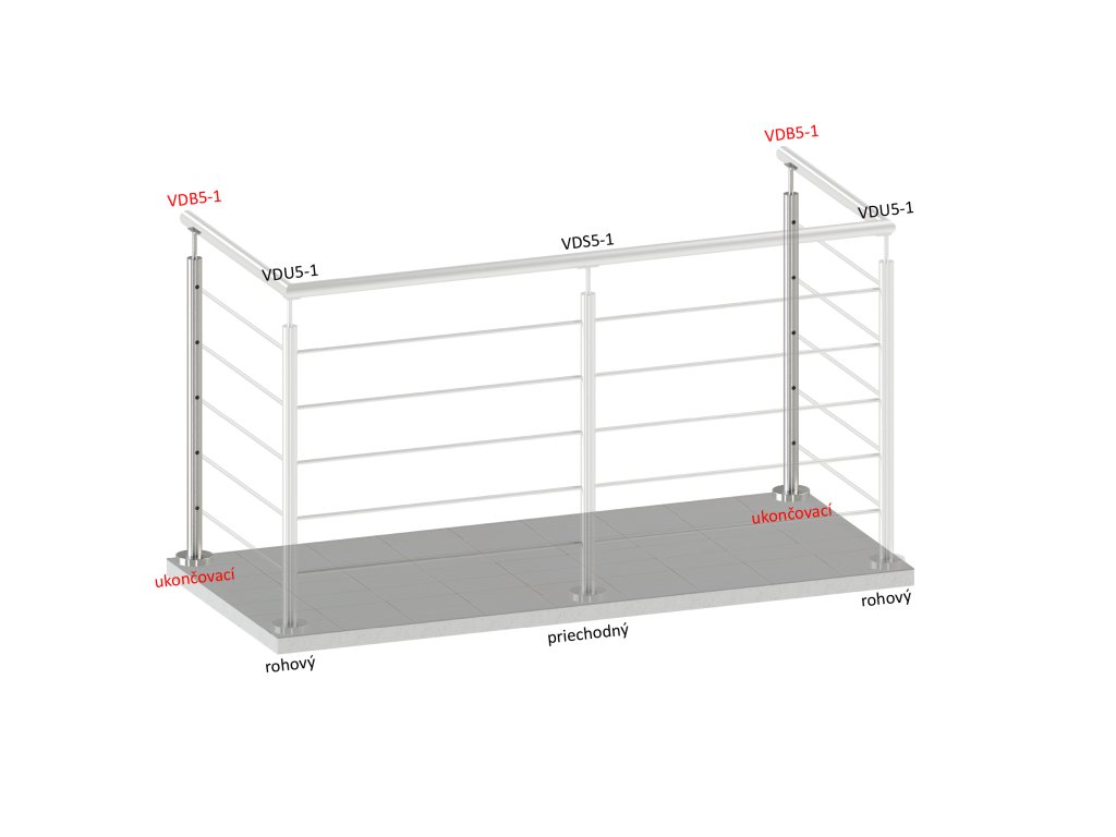 nerezový stĺp, vrchné kotvenie, 5 dierový koncový, vrch pevný (ø 42.4x2mm), brúsená nerez K320 /AISI304Dodatočné parametre