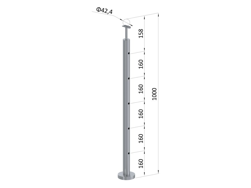 nerezový stĺp, vrchné kotvenie, 5 dierový koncový, vrch pevný (ø 42.4x2mm), brúsená nerez K320 /AISI316Dodatočné parametre