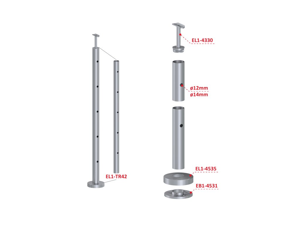 nerezový stĺp, vrchné kotvenie, 5 dierový priechodný, vrch pevný (ø 42.4x2mm), leštená nerez /AISI304Dodatočné parametre